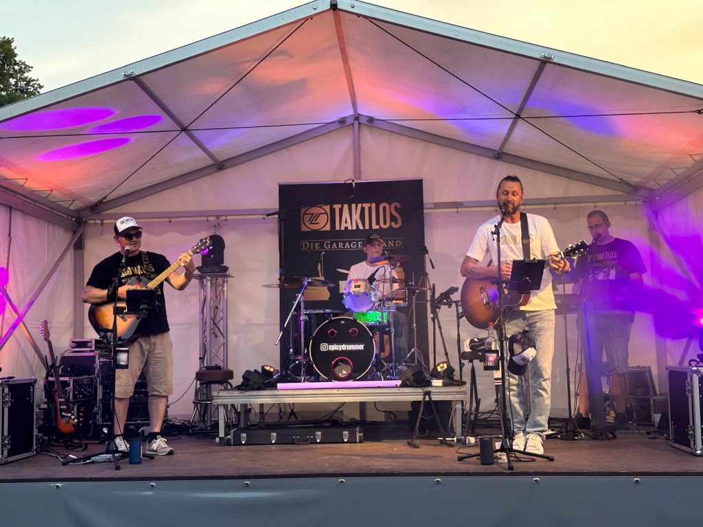unser Bandname steht gleichzeitig auch für unsere Geschichte. Begonnen hat alles mit unseren beiden Liedgitarristen, die sich dazu entschlossen hatten Gitarre zu lernen. Einfache Songs mit Gesang waren das Ziel. Geprobt wurde natürlich in der Garage, doch das Taktgefühl fehlte noch etwas. Doch wie der Zufall es so wollte führte das Dorf mit der Garage unsere beiden Taktlossänger mit einem Keyboarder und Schlagzeuger zusammen und aus dem Duo „Taktlos“ wurde eine Band.